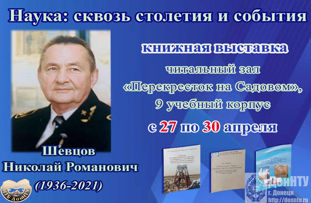 Также научно-техническая библиотека приглашает ознакомиться с книжными выставками «Наука: сквозь столетия и события», посвящёнными 90-летию со дня рождения заведующего кафедрой строительства шахт и подземных сооружений доктора технических наук, профессора Николая Романовича Шевцова (1936–2021) (читальный зал «Перекресток на Садовом», 9 учебный корпус, с 27 по 30 апреля) и 95-летию со дня рождения заведующего кафедрой охраны труда и аэрологии имени И. М. Пугача доктора технических наук, профессора Виктора Игнатьевича Николина (1931–2015) («БИБЛИОЦЕНТР», 2 учебный корпус, с 27 по 30 апреля), принять участие в интерактивной книжной выставке «О сколько нам открытий чудных…», посвящённой Десятилетию науки и технологий, и литературном онлайн-вернисаже «Сила России – в единстве народов!», посвящённом Году единства народов, посетить постоянно действующие книжные выставки «История ДонНТУ в книгах» и «Ученые мира – юбиляры 2026» в течение года.