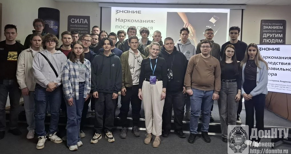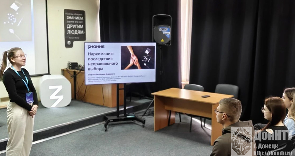 В рамках межведомственной комплексной оперативно-профилактической операции «Чистое поколение-2026» в лектории Российского общества «Знание» для студентов – представителей всех факультетов ДонНТУ – 7 апреля состоялась лекция на тему «Наркомания: последствия неправильного выбора». Лектор Екатерина Андреевна Стефано, ассистент, аспирант кафедры внутренних болезней № 1 Донецкого медицинского университета имени М. Горького, врач-терапевт терапевтического отделения ГБУ ДНР «ЦГКБ № 3 г. Донецка», познакомила слушателей с историей возникновения наркотиков, рассказала, как их классифицируют и какое разрушительное воздействие они оказывают на физическое и психическое здоровье человека. Также Екатерина Андреевна акцентировала внимание аудитории на том, что в России операции с наркотиками (изготовление, приобретение, хранение, перевозка, пересылка и сбыт) преследуются в уголовном порядке. Студенты активно включились в беседу и задавали лектору интересующие их вопросы.