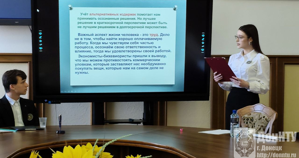 От ДонНТУ с результатами своих исследований выступила аспирант кафедры управления бизнесом и персоналом Александра Леонтьева.