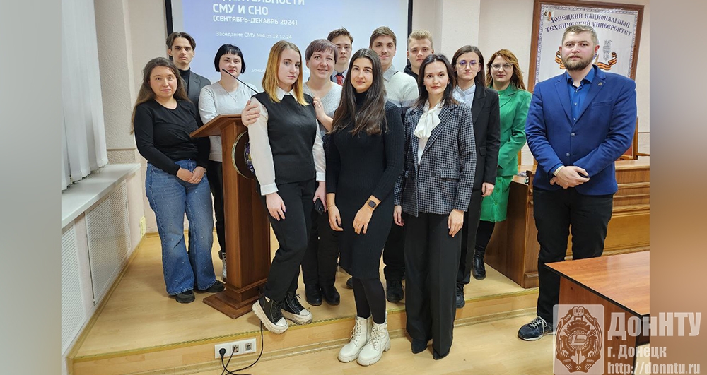 В Донецком национальном техническом университете в зале заседаний учёного совета 18 декабря состоялось подведение итогов уходящего года Советом молодых учёных и Студенческим научным обществом, а также были озвучены планы на 2025 год. Открыл заседание и напутствовал молодых учёных и студентов ректор Александр Яковлевич Аноприенко, с докладами выступили председатель СМУ Мария Павловна Руденко и её заместитель Виктория Владимировна Захарова.